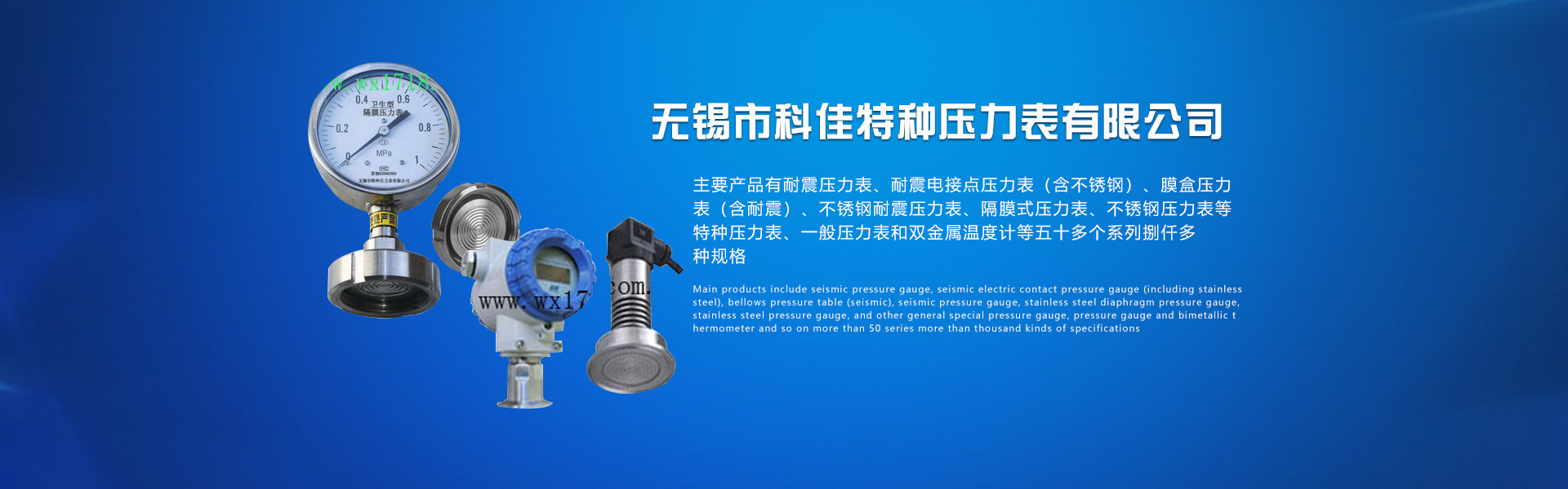 無(wú)錫市科佳特種壓力表有限公司是一家專(zhuān)業(yè)從事中高檔壓力表、溫度計(jì)研發(fā)、生產(chǎn)、銷(xiāo)售為一體的綜合性公司。主要設(shè)備自主研發(fā),性能優(yōu)越,自動(dòng)化程度高,且引進(jìn)國(guó)外壓力表廠(chǎng)的先進(jìn)工藝技術(shù)及管理機(jī)制,生產(chǎn)能力已達(dá)到同行業(yè)先進(jìn)水平。